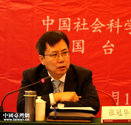中国社会科学院台湾研究所副所长张冠华在首届“两岸南南合作与发展论坛”上致辞。(中国台湾网 李杰 摄)