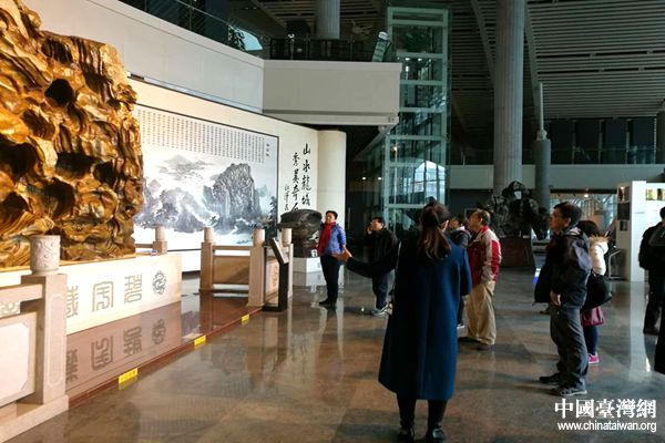 参加首届“两岸南南合作与发展论坛”的两岸专家学者参观柳州奇石馆。(中国台湾网 李杰 摄)