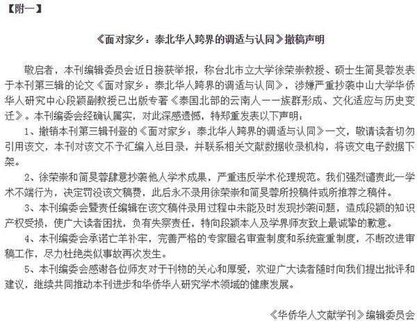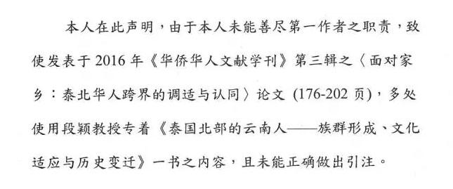 段颖说,在发现抄袭后,《华侨华人文献学刊》编委会核对后,及时与他联系,先行致歉,并商议撤稿事宜。
