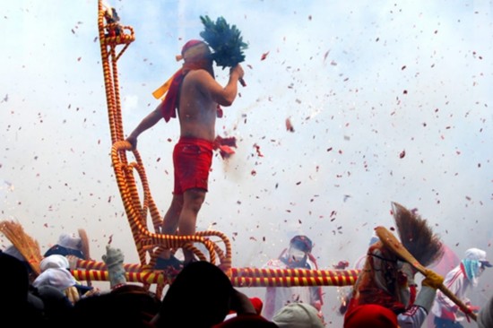 也因为传说中的寒单爷怕冷,所以人们就丢鞭炮为他驱寒。台东人认为鞭炮炸得旺,寒单爷就会感谢他,给予好的财运。不过真人扮演的寒单爷可能会被炸伤,而抬轿的人则从头包到脚避免被炸受伤。