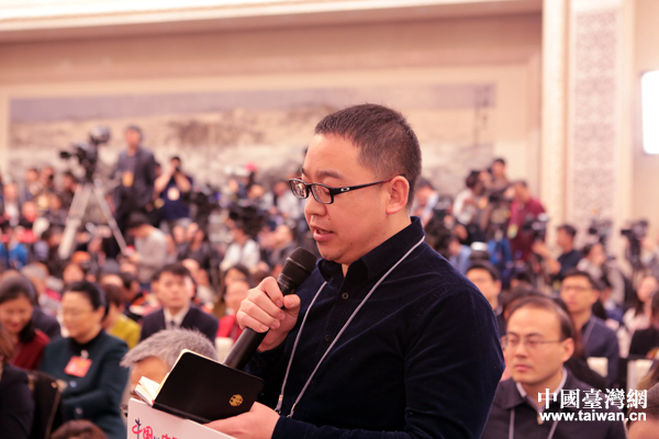 3月2日下午,全国政协十二届五次会议新闻发布会在人民大会堂一层新闻发布厅举行。图为媒体记者提问。(中国台湾网 李宁 摄)