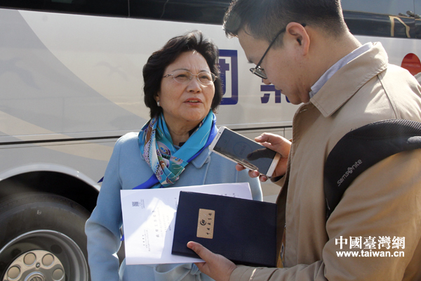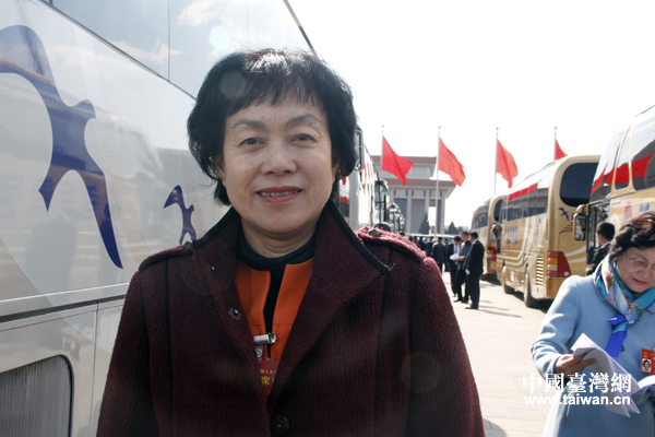 3月5日,在京参加十二届全国人大五次会议的台籍代表陈云英接受记者采访。(中国台湾网 王怡然 摄)