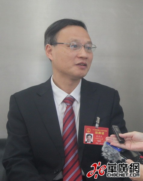 全国人大代表、平潭综合实验区党工委书记张兆民接受华广网记者采访(廖一杰 摄)