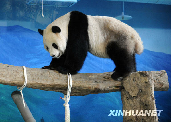 动物园给“团团”“圆圆”一家三口安排了专门的“户外场所”。场地中有人造的攀爬支架,有木头桩子,还有保育员们精心设计的玩具。比如,他们为了让小“圆仔”尽快适应户外生活,快乐成长,特地设计了许多玩具,最受青睐的是塑料桶做成的摇床和妈妈的饮水盆。