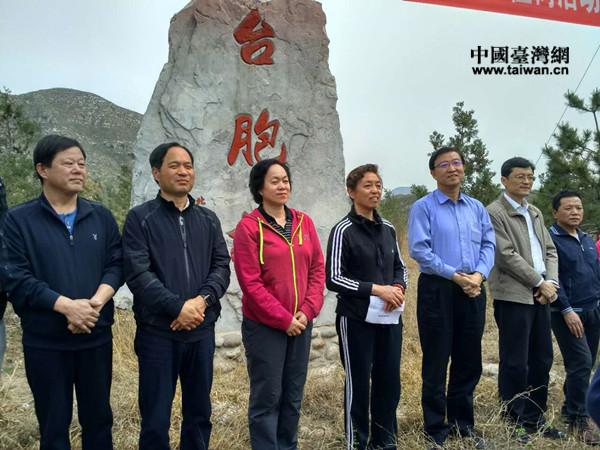 全国台联党组书记、北京市台联会长苏辉(右二),北京市台联党组书记王兰栋(右一)与最小年纪台胞在一起植的树前合影留念。(中国台湾网 王亚静 摄)