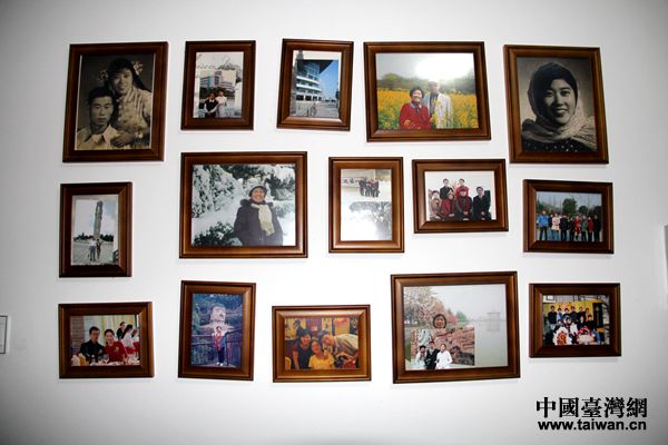 董凤英家墙上挂着的照片,记录着几十年来的人生路程,台湾客人赞叹“好美啊”。(中国台湾网 李杰 摄)