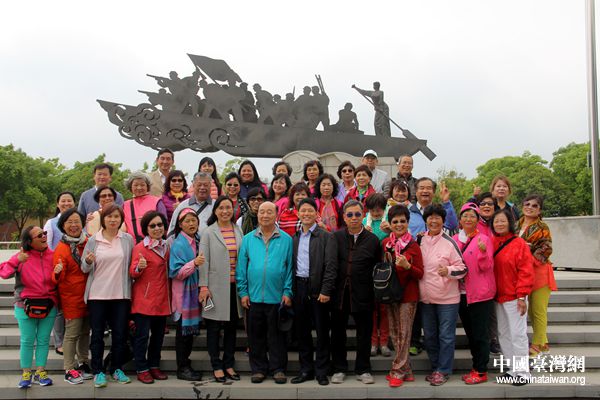 台湾新北市交流团参访“我送亲人过大江”主题雕塑广场。(中国台湾网 李杰 摄)