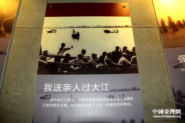 主题展馆里的“我送亲人过大江”照片,定格了一段历史回忆。(中国台湾网 李杰 摄)
