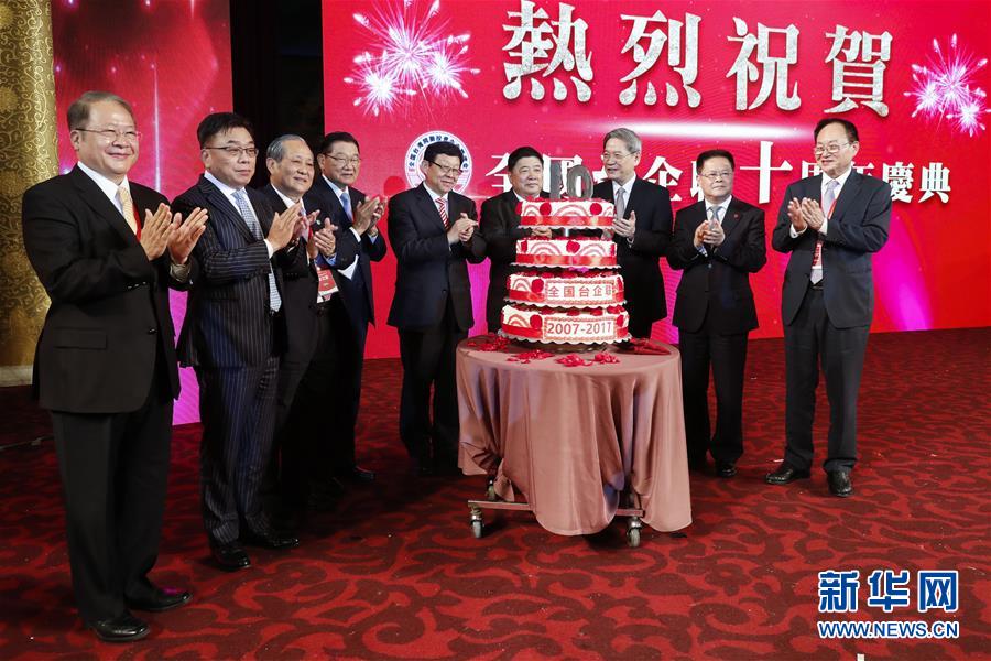 2017年5月24日 全国台企联成立十周年庆典晚会在京举办。当日,中共中央台办、国务院台办主任张志军(右三)、海峡两岸关系协会会长陈德铭(左五)、全国台企联会长王屏生(右四)、台湾三三会会长江丙坤(左四)等出席庆典晚会。当日,全国台湾同胞投资企业联谊会成立十周年庆典晚会在北京饭店举行。 新华社记者沈伯韩摄