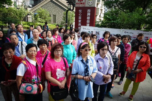 台湾新北市宗亲文化暨社区发展交流团参观镇江市京口区四牌楼街道虹桥社区。(镇江市台办 章邦勇 摄)