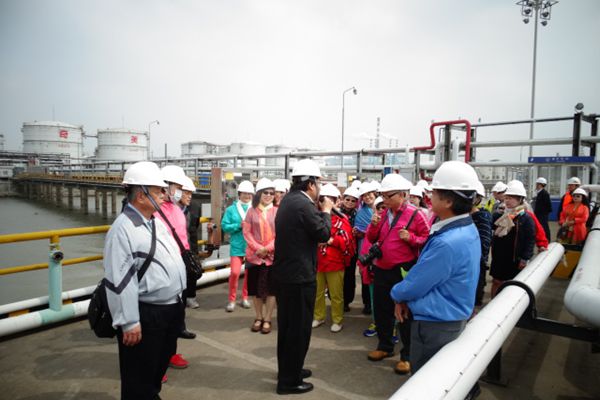 台湾新北市宗亲文化暨社区发展交流团参观台资企业镇江奇美化工有限公司自建码头。(镇江市台办 章邦勇 摄)