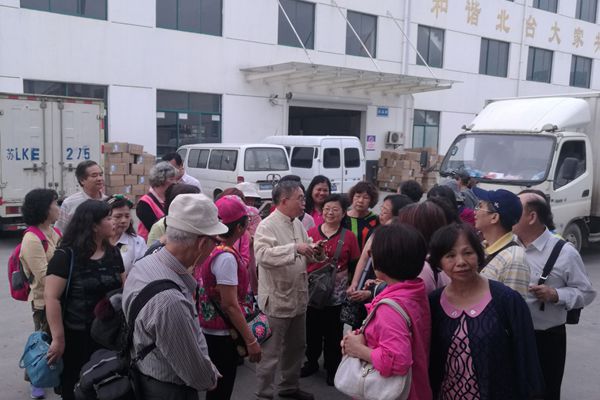 句容茅山脚下的江苏北台壁纸公司,是一家专门从事壁纸研发和生产的台资企业,也是本次交流活动中参观的第一家台资企业。公司董事长伍祖坚是台湾新北人,听说有家乡的乡亲来公司参观,便早早迎侯在厂门口。他乡遇故知,浓浓的乡音让他来不及自我介绍,便被交流团员们抱成一团。参观公司产品陈列室、生产流水线,从公司的起步、发展到未来公司的规划,从大陆改革开放带给台商的机遇到大陆各级政府部门的服务,从大陆的快速掘起到岛内政治纷争和经济衰退,伍祖坚娓娓道来,赢得乡亲们的阵阵掌声。伍祖坚告诉大家,现在自己已经退休了,工厂的事交由两个儿子负责,大陆是一个广阔的天地,要让年轻人来大陆感受和锻炼。随后几天的交流行程,年逾七旬的伍老还陪着大家主动当起了向导。