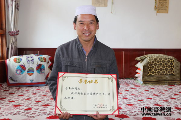 马玉海被评为全县优秀共产党员。(中国台湾网 李宁 摄)