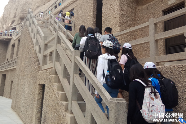 营员们参观敦煌莫高窟(中国台湾网 张亚静 摄)