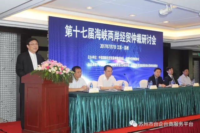 7月7日,由贸仲委和台湾中华仲裁协会共同主办的第十七届海峡两岸经贸仲裁研讨会在苏州举行,台湾中华仲裁协会及来自两岸法学界、工商界及仲裁机构代表150余人参加了会议,国台办投诉协调局局长王刚、苏州市台办主任杨军出席了会议。