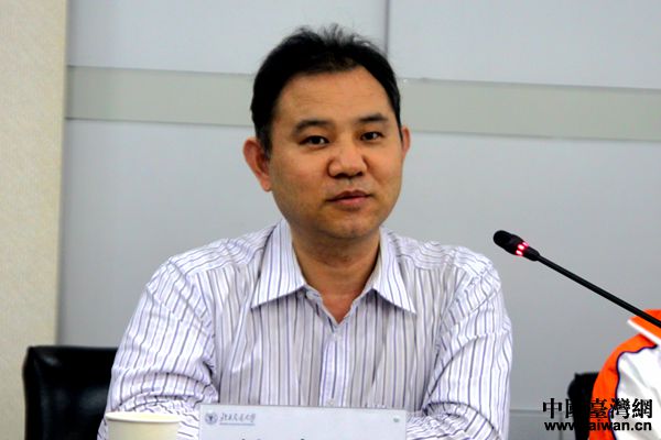 北京交通大学副校长关忠良向来访的台湾大学生介绍学校概况。(中国台湾网 李杰 摄)