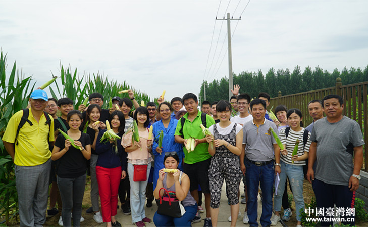 研习营一行在中国农业大学涿州农场考察玉米实验基地。(庞胜苗 供图 中国台湾网 发)