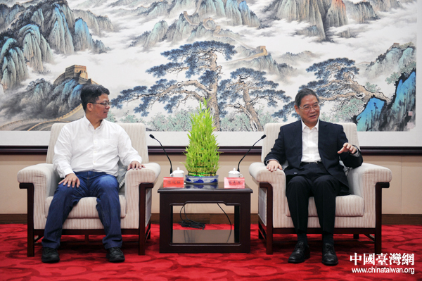 张志军会见参加第二届京台青年创新创业大赛决赛的台湾团队代表。(中国台湾网发)