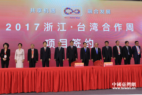 2017浙江·台湾合作周9月20日在杭州开幕。开幕式上,杭州主场签约12个项目,签约金额27亿美元,约178亿人民币(中国台湾网 尹赛楠 摄)