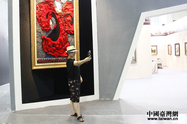 参观者在2017杭州文博会自拍留念。(中国台湾网 王怡然 摄)