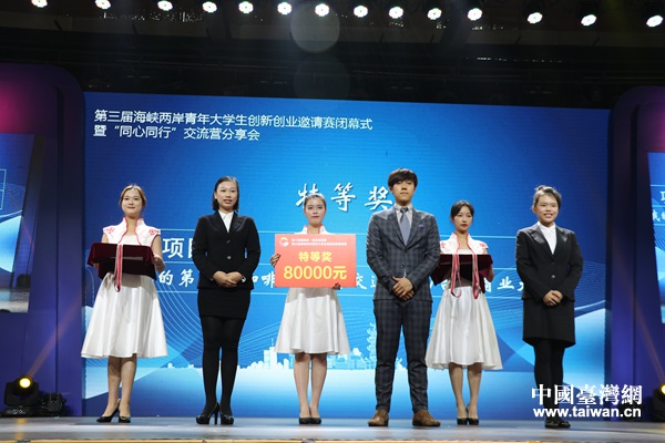 9日,第三届海峡两岸青年大学生创新创业邀请赛在武汉落幕,来自台湾的“我的第二杯咖啡”创业团队获得大赛特等奖。(中国台湾网 李宁 摄)