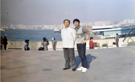 1985年12月,罗文治与幼子在香港合影。(图片由罗吉元提供)