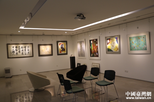 黄金德家地下一层的墙上挂满了他的作品。(中国台湾网 韩静 摄)