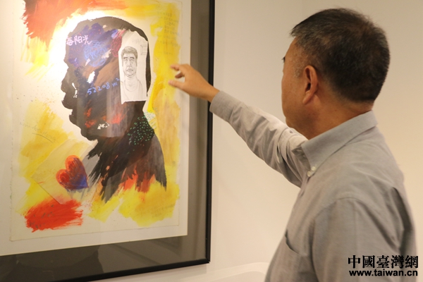 黄金德向记者讲述画上记录的内容。(中国台湾网 韩静 摄)