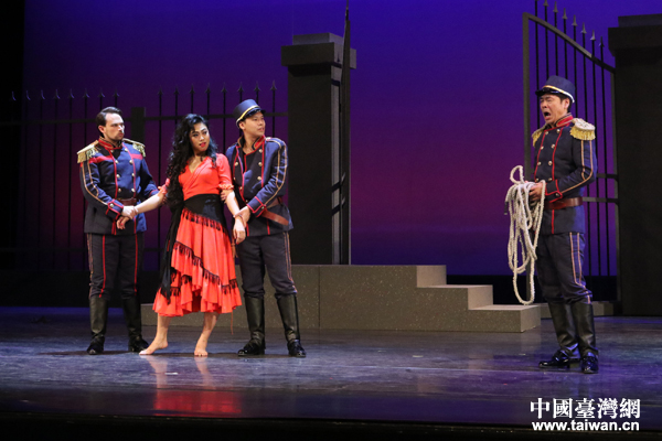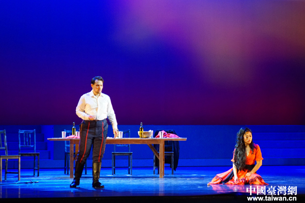 2018年1月7日晚,台中市标志性建筑台中市歌剧院外人声鼎沸,灯光璀璨。这座2017年被评为“台湾建筑特别奖”的歌剧院迎来了一场特殊精彩的演出,由宁波交响乐团和台湾创世歌剧团联合制作,中央音乐学院院长俞峰担任艺术指导,中央音乐学院指挥系教授陈琳执棒,十大女中音歌唱家、中国音乐学院附中青年教师陈冠馥和台湾著名歌唱家翁若佩领衔主演的全本法语歌剧《卡门》在这里隆重上演。(中国台湾网发 宁波交响乐团供图)