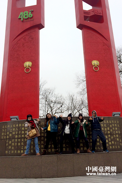 两岸青年在东关街合影留念。(中国台湾网 王亚静 摄)