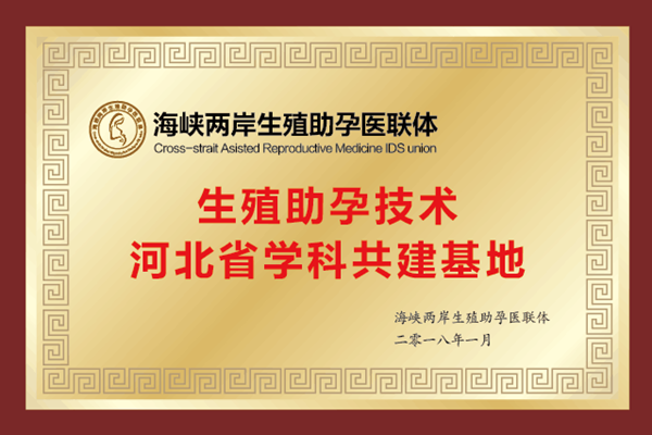 图为:“海峡两岸生殖助孕医联体河北省学科共建基地”牌匾
