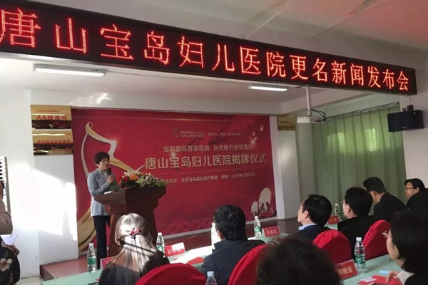 随着民众对生殖孕育技术、妇产科诊疗及相关医疗服务的需求日益增加,和台式妇产服务理念的推广和深入,以及宝岛国际医疗集团业务发展的需要,北京宝岛妇产医院的第一家连锁医疗机构——唐山宝岛妇儿医院更名成立,并于2018年1月25日举行揭牌仪式。