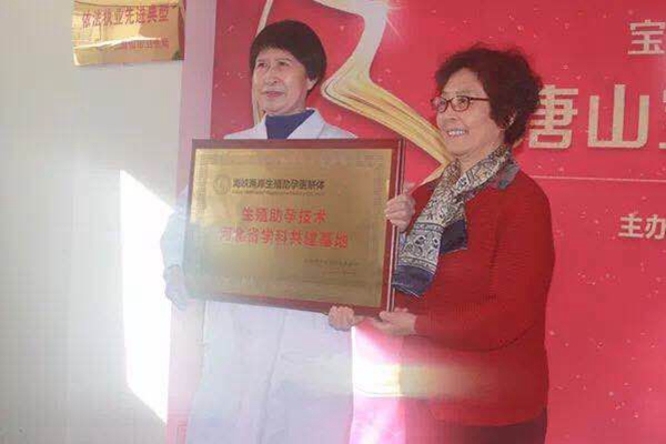 图为:北京宝岛妇产医院名誉院长、海峡两岸生殖助孕医联体会长左文莉为唐山宝岛妇儿医院授牌