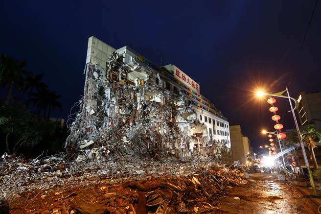 地震中坍塌的花莲统帅大饭店。(图)