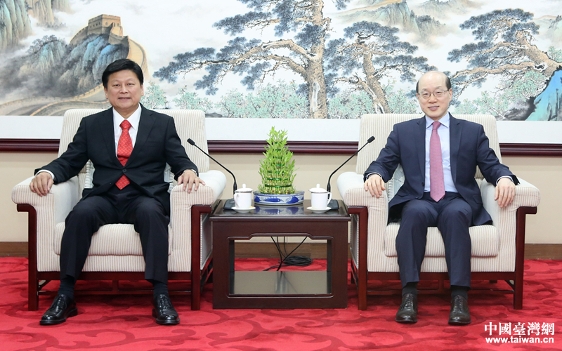 中共中央台办、国务院台办主任刘结一会见台湾花莲县长傅崐萁。(中国台湾网 扶海涛 摄)