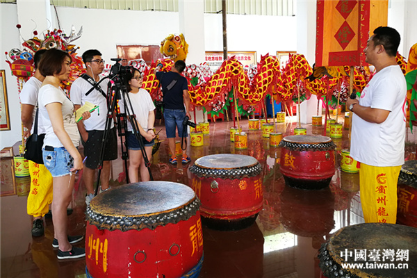 制组采访宾阳宾州炮龙协会常务副会长、龙队队长莫钟。(图片来源:南宁市台办)