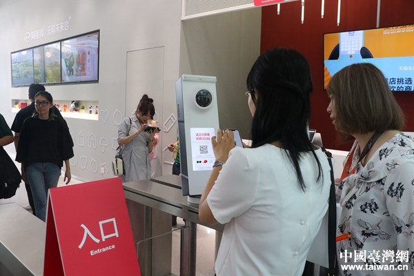 两岸记者体验阿里巴巴“刷脸支付”。(中国台湾网 李奕均 摄)