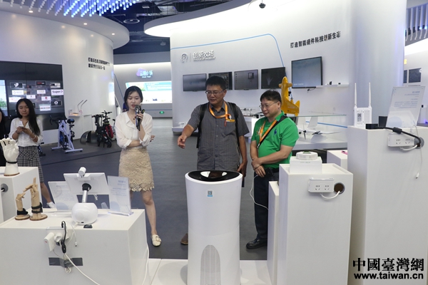 两岸媒体记者听云栖小镇工作人员讲解。(中国台湾网 李奕均 摄)