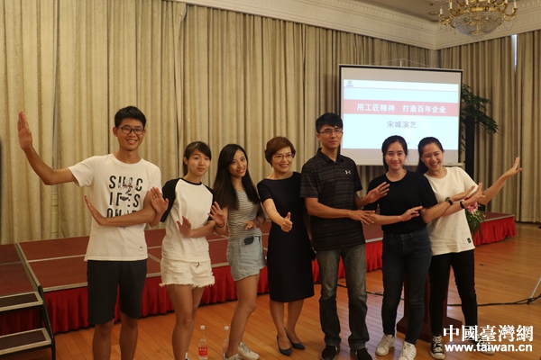 宋城演艺发展股份有限公司总经理俞枫与6位来自台湾的实习生合影。(中国台湾网 李奕均 摄)