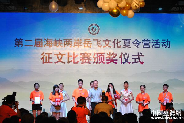 中国台湾网7月13日重庆讯 为促进两岸青少年一同传承岳飞爱国主义精神,认识中华优秀文化的魅力,7月10日,第二届海峡两岸岳飞文化夏令营在重庆市文化宫举行开营仪式。市台办主任胡奕向夏令营学生代表授营旗并宣布开营,标志着海峡两岸师生正式开启了领略岳飞文化的暑期之旅。在开营仪式上,两岸学子们观看岳飞文化夏令营主题宣传片《共同记忆》,同台演出精彩节目,感受岳飞文化思想,携手传承、发扬中华民族优秀文化,促进了两岸青少年心灵契合。