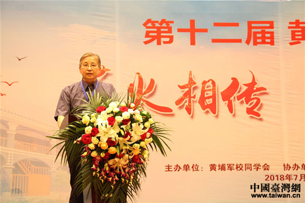 开幕式上,台湾中国统一联盟主席戚嘉林做主题发言。(图片来源:黄埔军校同学会)