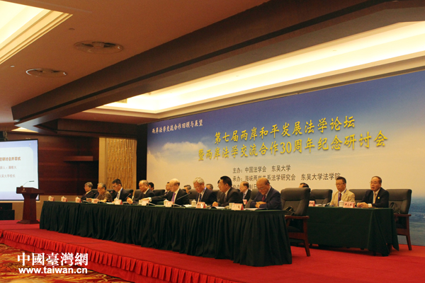 第七届两岸和平发展法学论坛暨两岸法学交流合作30周年纪念研讨会7月19日在北京开幕。(中国台湾网 张洁 摄)