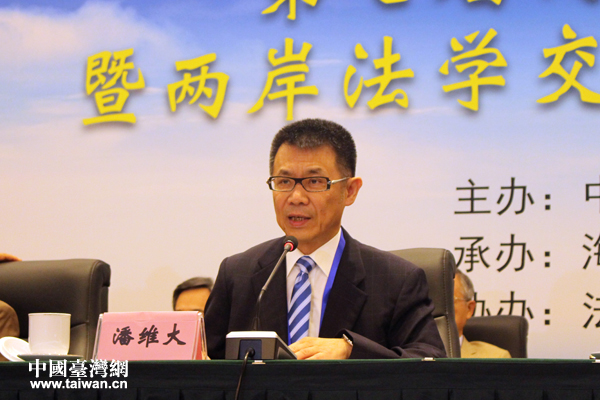 台湾东吴大学校长潘维大认为,习近平总书记与连战先生的会面是两岸关系发展的一次非常重要的正向沟通,指明了两岸关系的政治方向和正确道路。连战先生也提出一个中国、两岸和平、互利融合、振兴中华的四点主张。这表达了两岸人民的共识和期待。当前,大陆发奋图强、富国富民,使中华民族得以中兴;“一带一路”倡议为两岸法学交流合作勾画出共同奋斗目标。他建议,两岸法学界加强在“一带一路”法制工作上合作,开展“一带一路”具体法律领域研究,推进形成融合中外的“一带一路”法制体系,共同遏制一些国家破坏国际经济法律秩序。苏永钦指出,大陆30年来的法治发展进步巨大,毫不逊色于经济发展。两岸法学交流合作可以创造巨大的红利,已经从相互学习转变为解决复杂社会问题能力的相互借鉴。两岸中国人一定能够在良法善治上做出更大超越,成为世界法治文明的领航者。