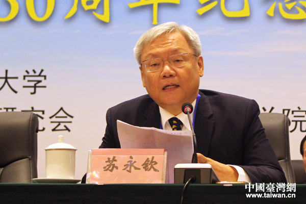 台湾法曹协会理事长苏永钦在开幕式上致辞。(中国台湾网 张洁 摄)