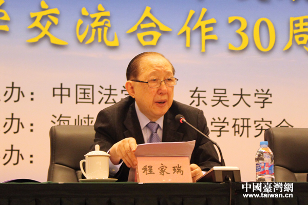 台湾东吴大学法学院教授、前院长程家瑞进行主题发言。(中国台湾网 张洁 摄)