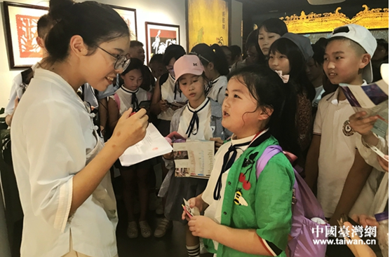 学生与藏宝处工作人员对礼仪暗号,收集图章和点赞。(中国台湾网 赵苗青 摄)
