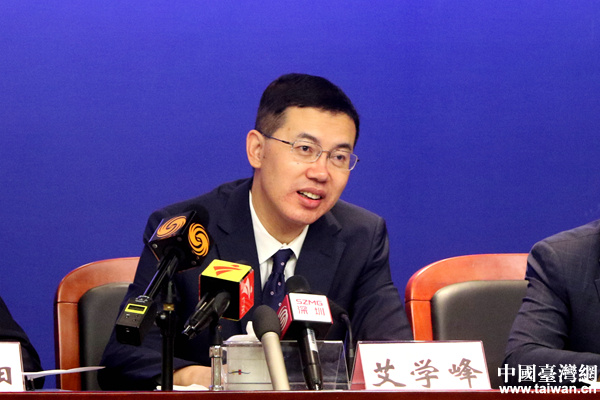 深圳市副市长艾学峰介绍深圳市贯彻落实“31条惠及台胞措施”的相关情况。(中国台湾网 尹赛楠 摄)