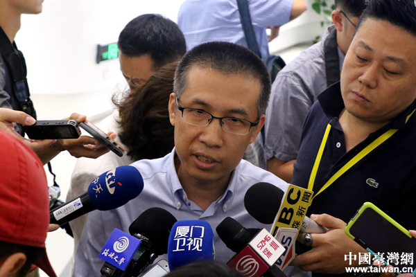 中广核集团文化宣传中心主任黄晓飞接受记者采访。(中国台湾网 尹赛楠 摄)