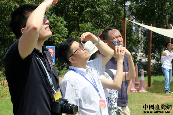 国务院台湾事务办公室新闻局局长马晓光携联合采访团观看无人机表演。(中国台湾网 尹赛楠 摄)
