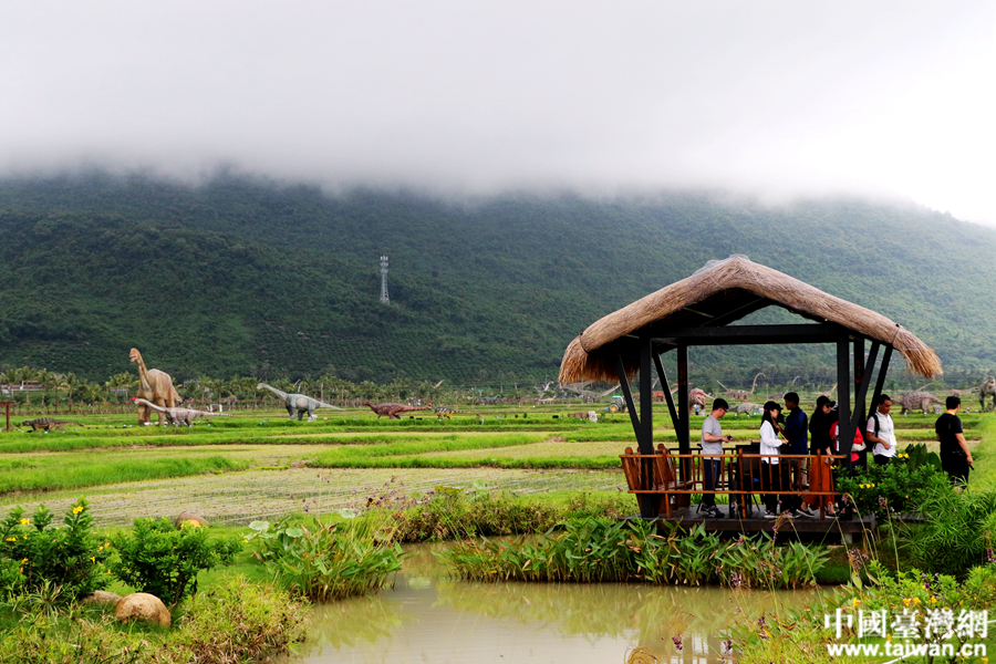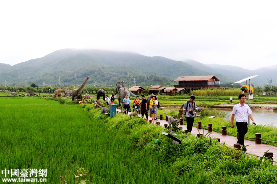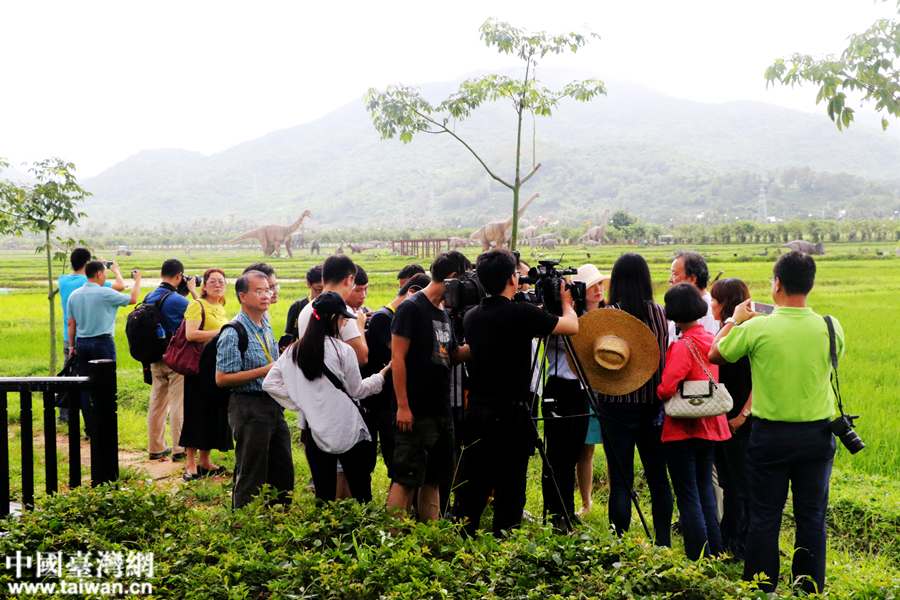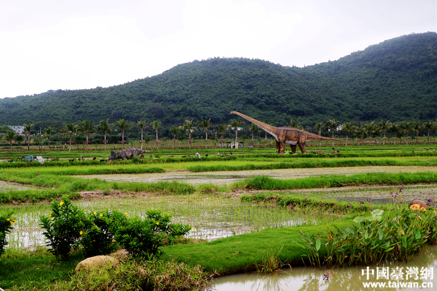 中国台湾网7月28日三亚讯 (记者 尹赛楠 雍紫薇)“一望无际的稻田边,竟然在上演一出现实版侏罗纪公园!”28日下午,“海峡两岸记者特区行”联合采访团来到三亚海棠湾水稻国家公园,看着稻田里那些活灵活现的恐龙,记者们纷纷拿起手中的相机,记录下这震撼人心的瞬间。